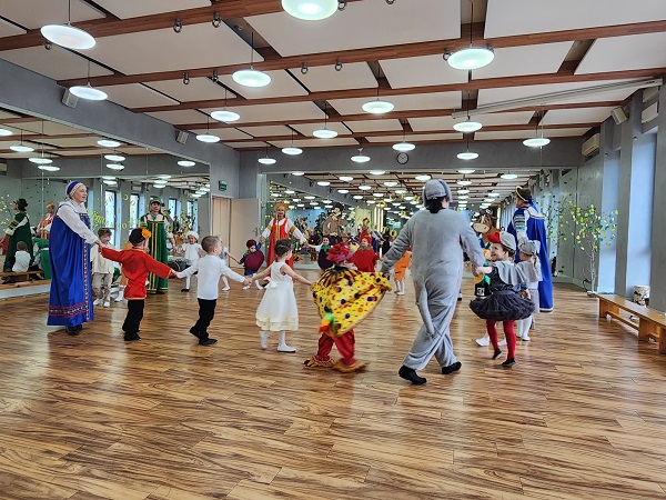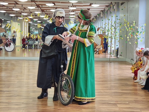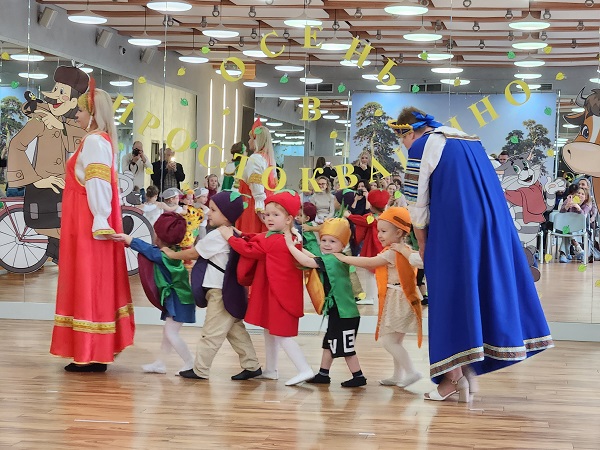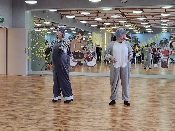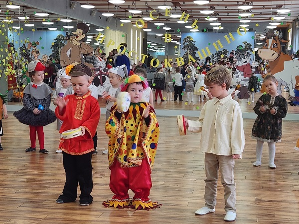 По приезду в Простоквашино ребят встретили кот Матроскин и пёс Шарик, которые вместе с ребятами пели, танцевали, рассказывали стихи, а также устраивали различные игры и конкурсы. В конце праздника дети помогли коту Матроскину найти его любимую корову Мурку, которая угостила детей вкусным, свежим молоком.