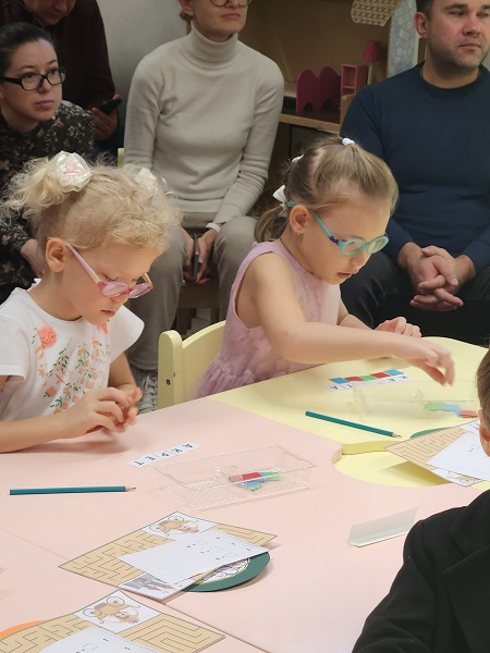 Дети прошли лабиринт, где им пришлось решать логические задачи и проявить находчивость, что развивало их умение работать в команде и принимать решения. Мы также выставляли время на циферблатах, что ознакомило детей с понятием времени и научило их ориентироваться в часах.