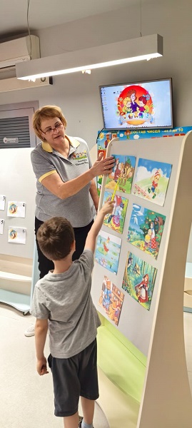 В ходе занятия дети закрепляли характерные признаки времен года, названия месяцев, называли последовательность дней недели, выстраивали числовой ряд, закрепляя счёт до10 и обратно, отгадывали загадки по любимым сказкам, совершенствовали умение выделять гласные звуки в словах, развивая связную речь.