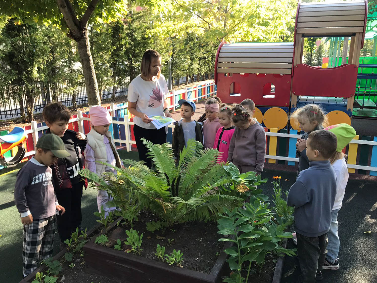 5. Наблюдение за растениями на поляне и клумбе детского сада.