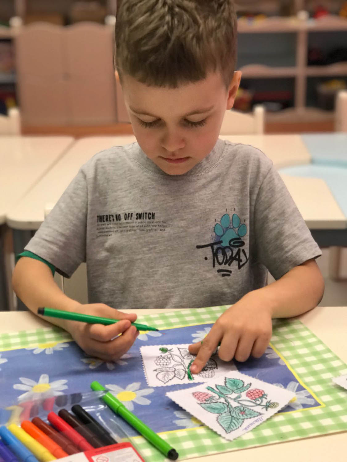 Цель: продолжить учить детей раскрашивать фломастерами не большие картинки.