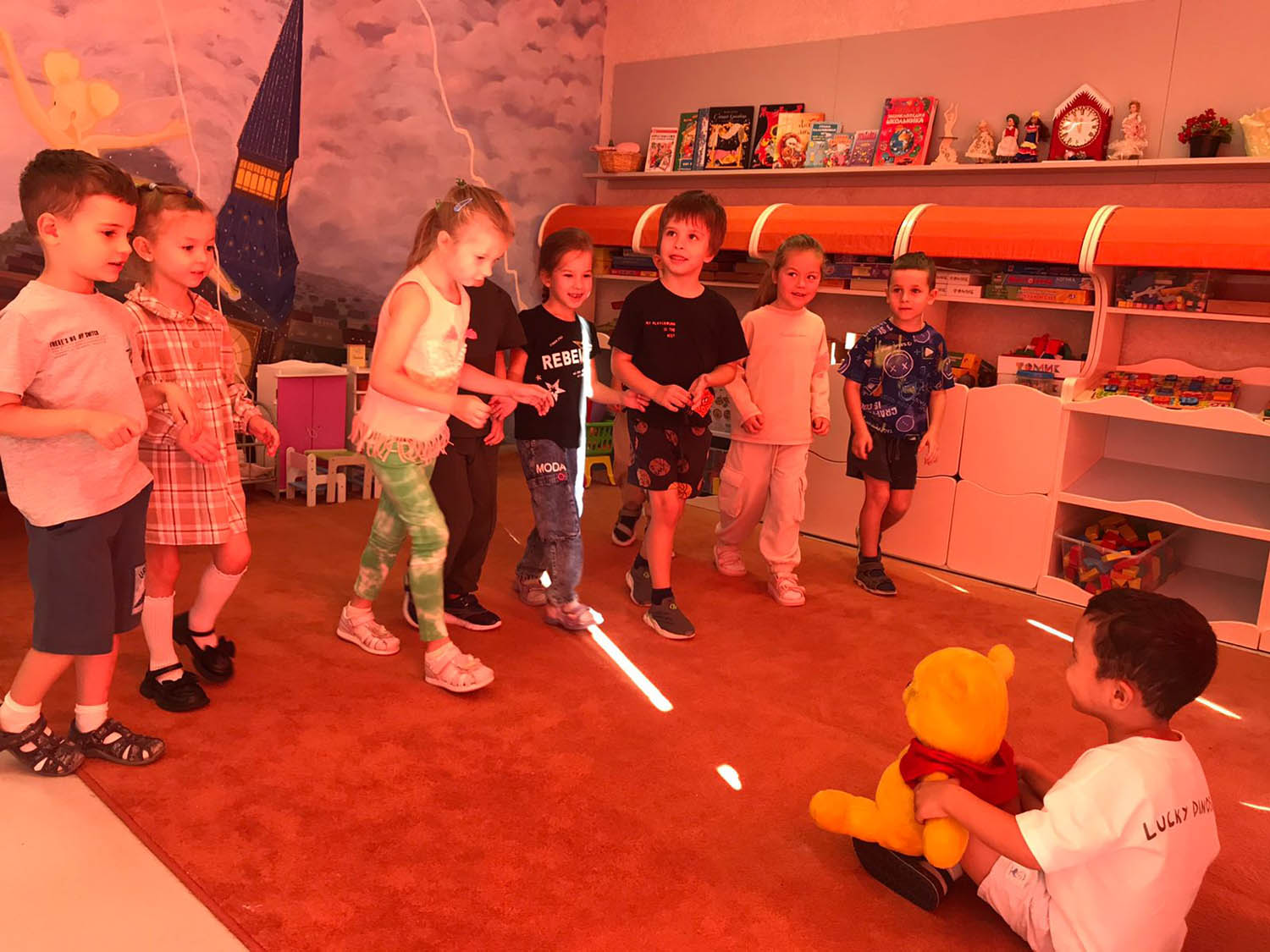 Цель: развитие двигательной активности, координации. Увеличение словарного запаса, умение сосредотачиваться и соотносить действия в соответствии с произносимыми словами, умение быстро реагировать на слова.
