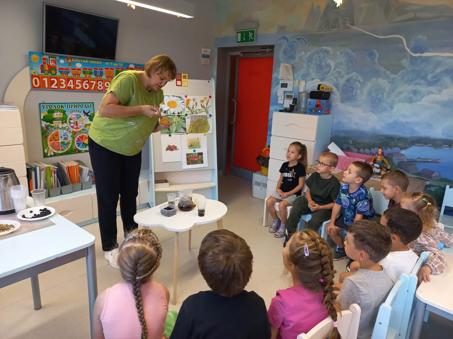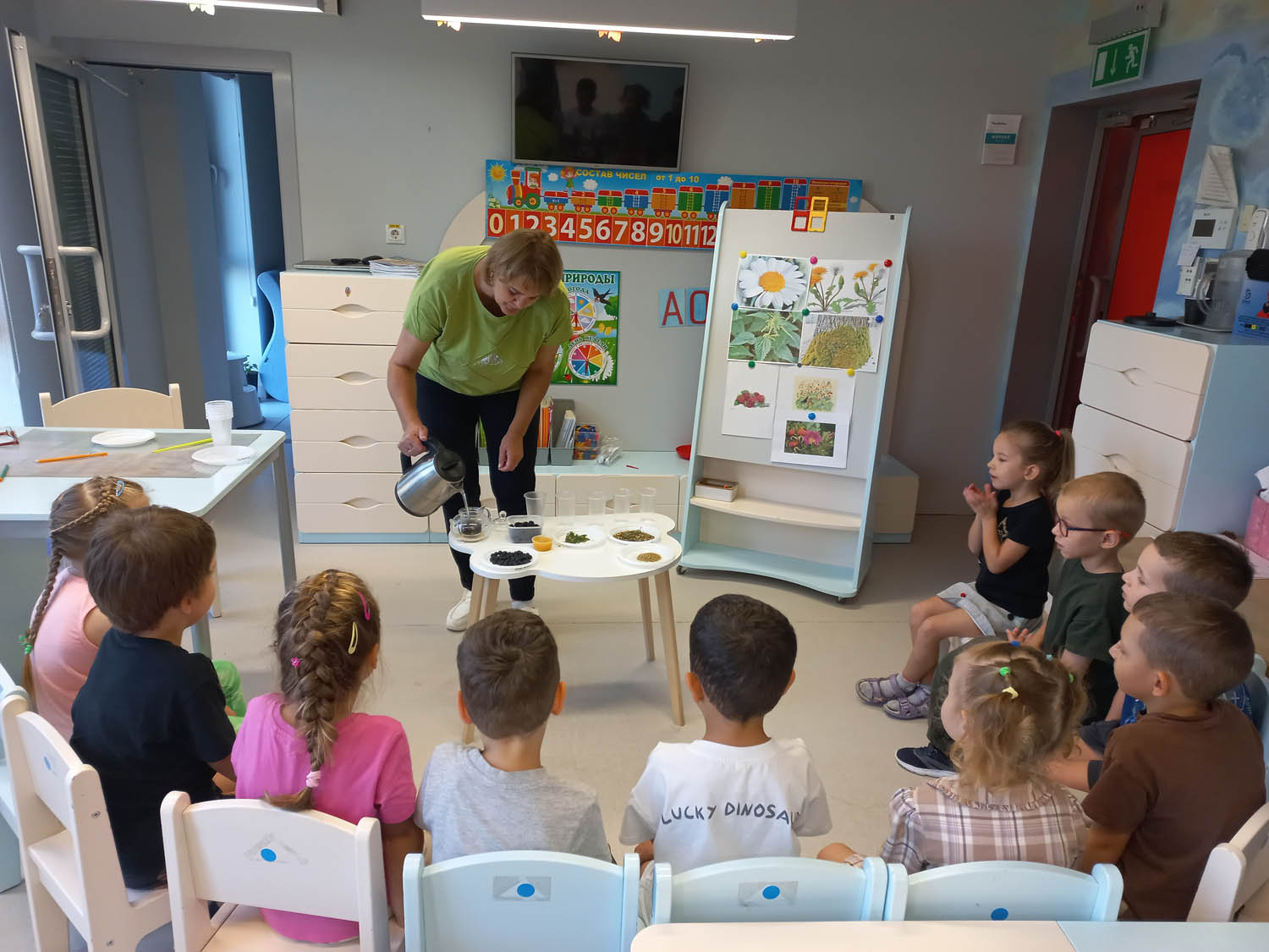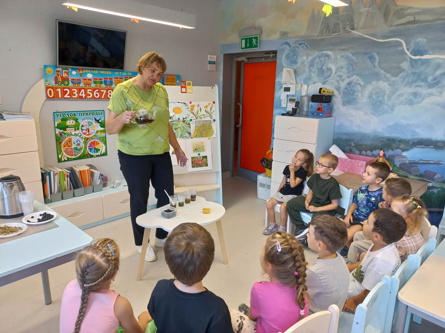 С помощью небольших экспериментов дети научились различать вкусный чай (с мятой, с душицей, с ромашкой) по запаху.