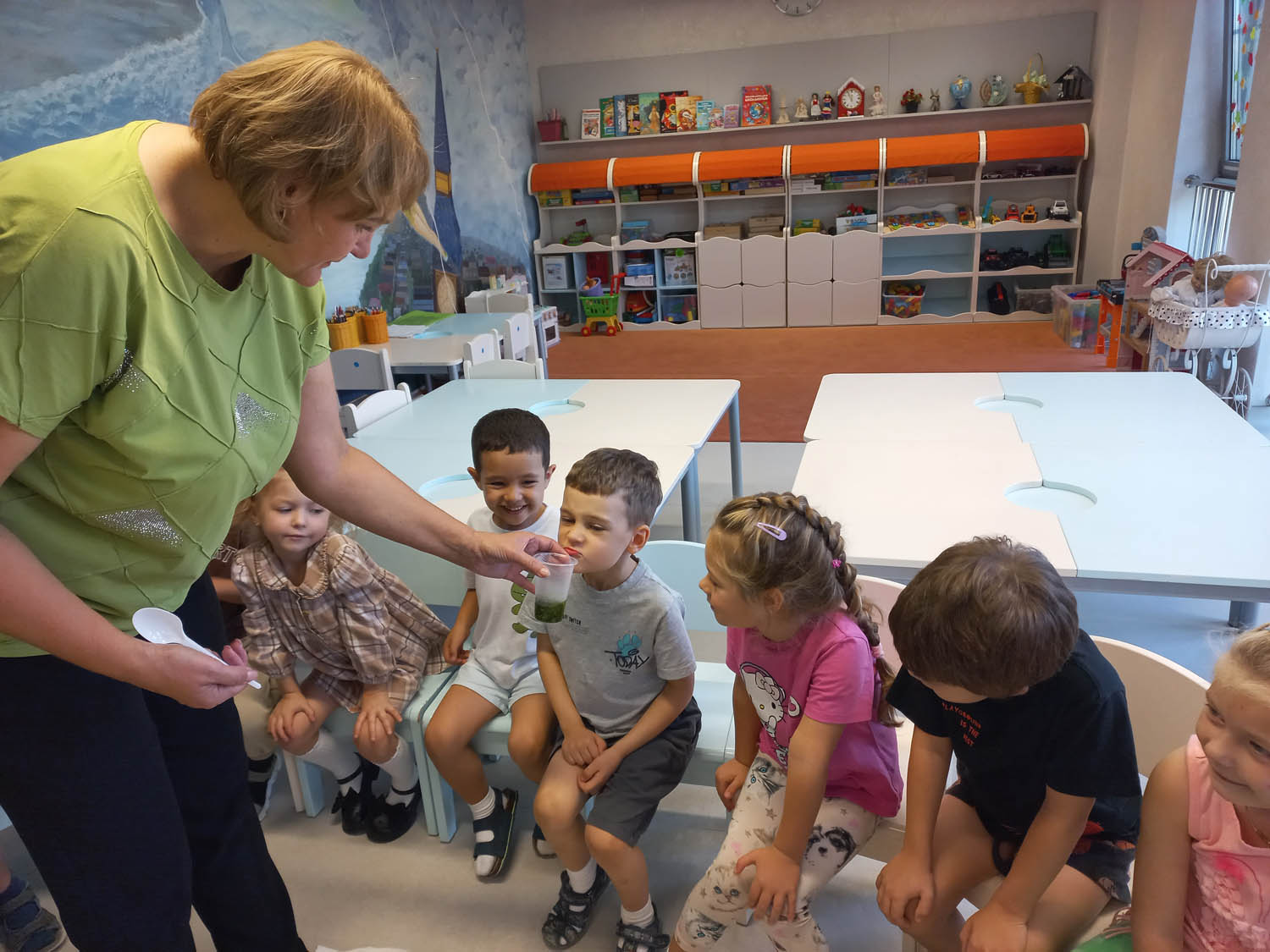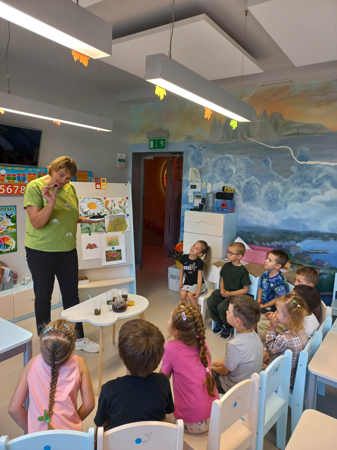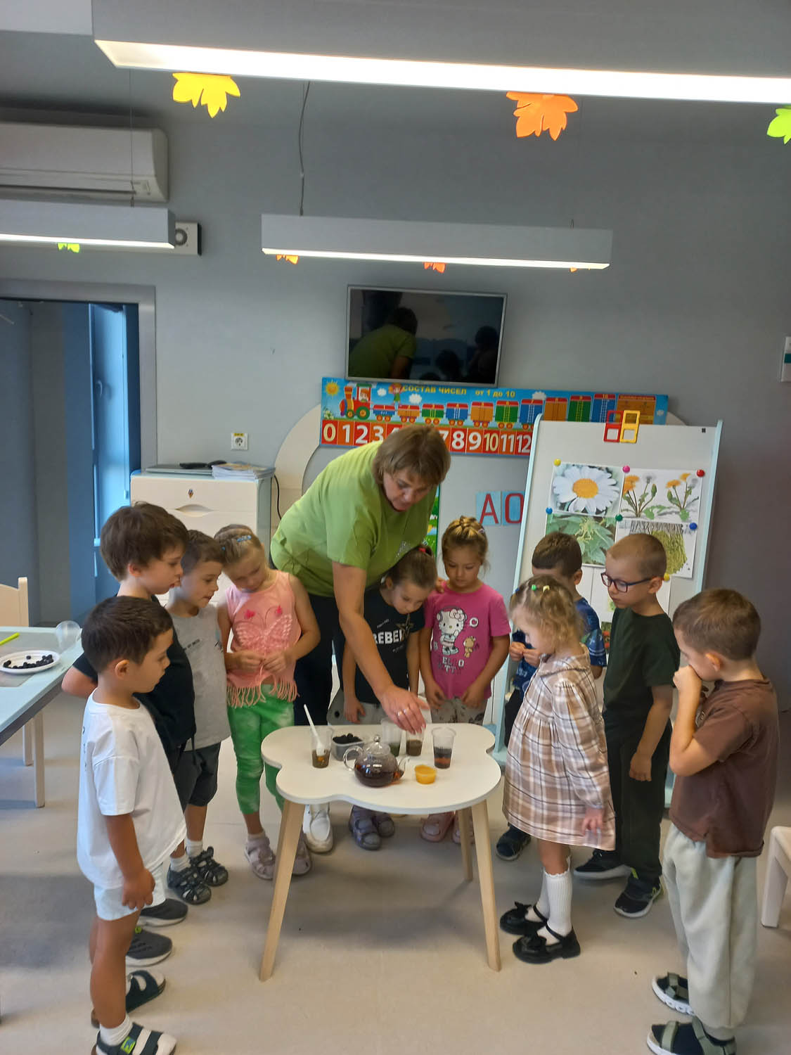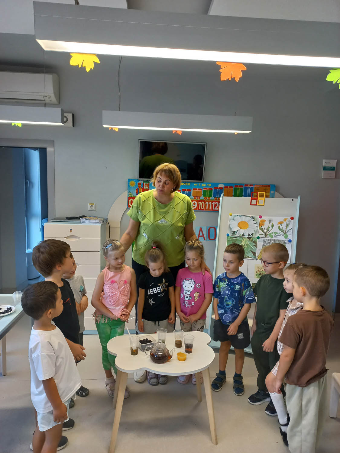 С помощью небольших экспериментов дети научились различать вкусный чай (с мятой, с душицей, с ромашкой) по запаху.