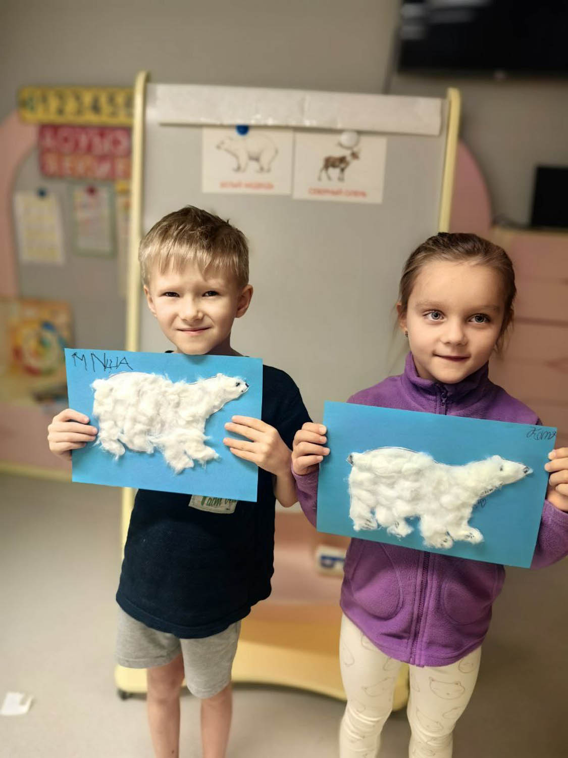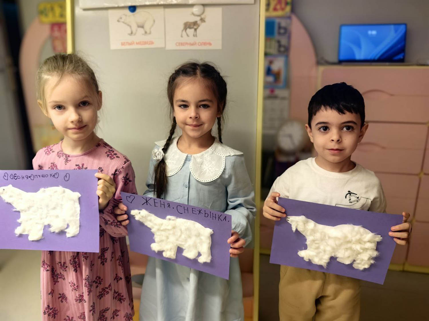 3. Было выполнено несколько работ по художественному - воспитанию: лепка «Пингвин», аппликация «Белые медведи», рисование «Северное сияние», «Белый медведь и пингвин».