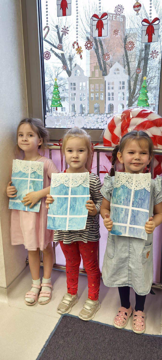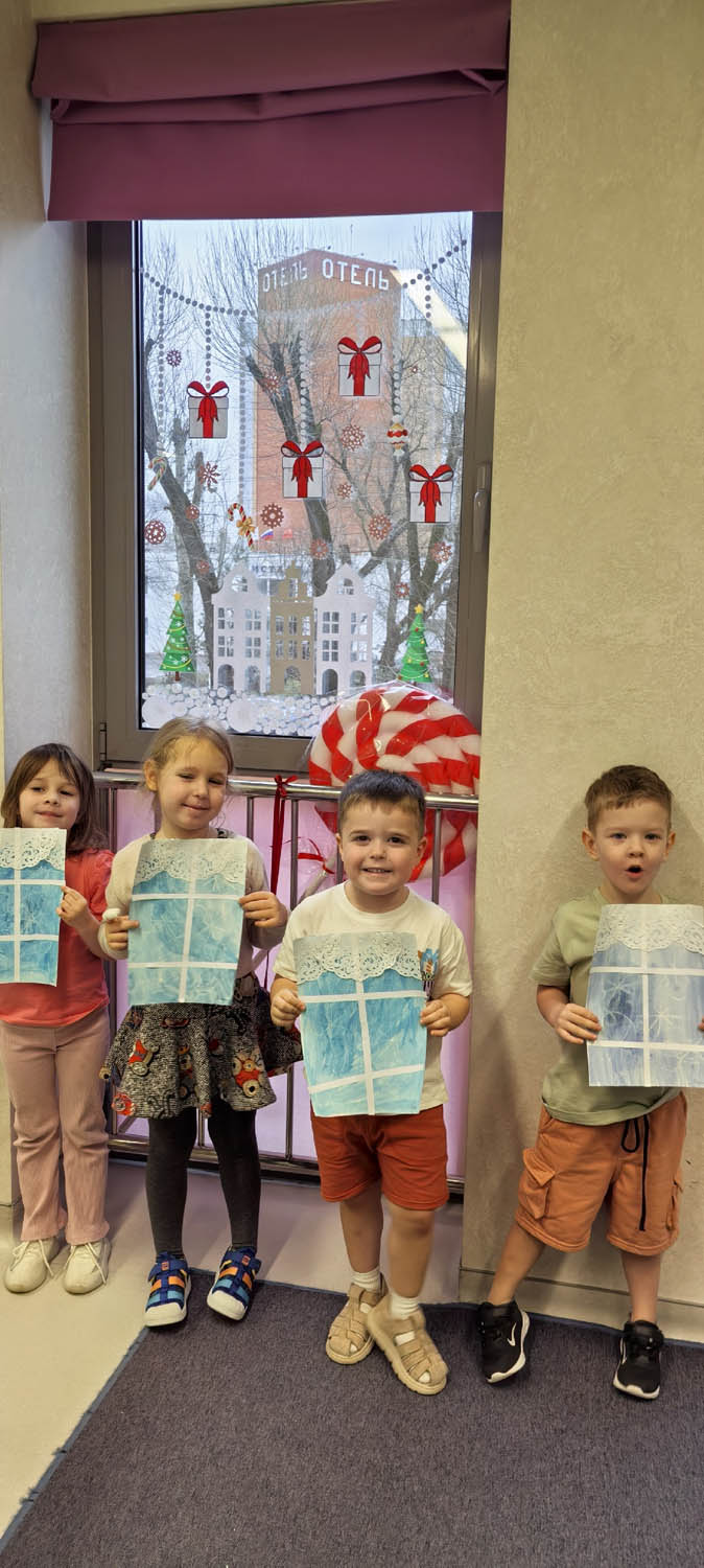 Рисование восковой свечой с элементами аппликации "Узоры на окне".