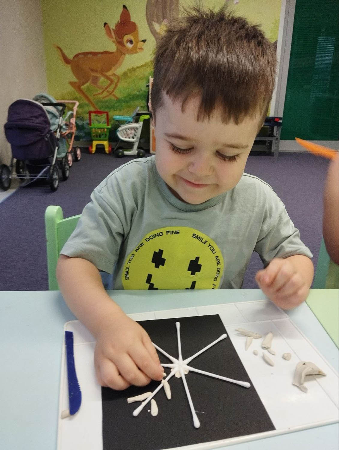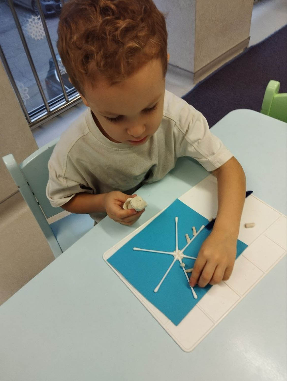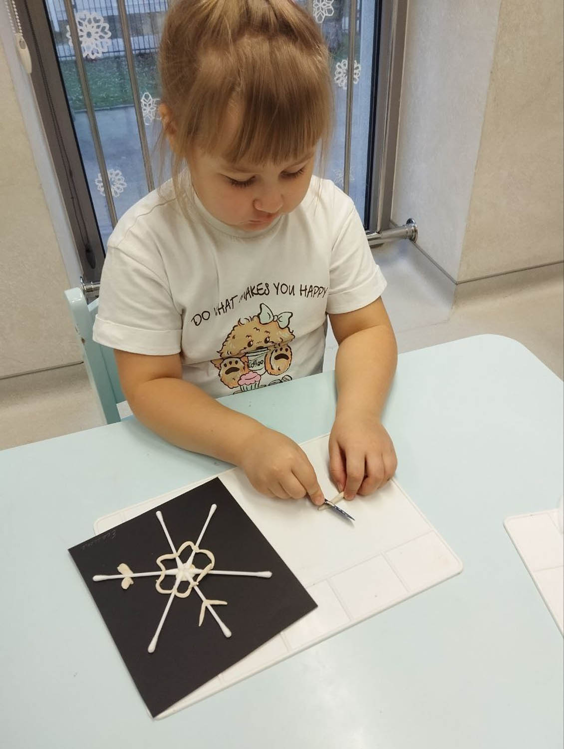 5. Аппликация из ватных палочек с элементами лепки "Снежинка"