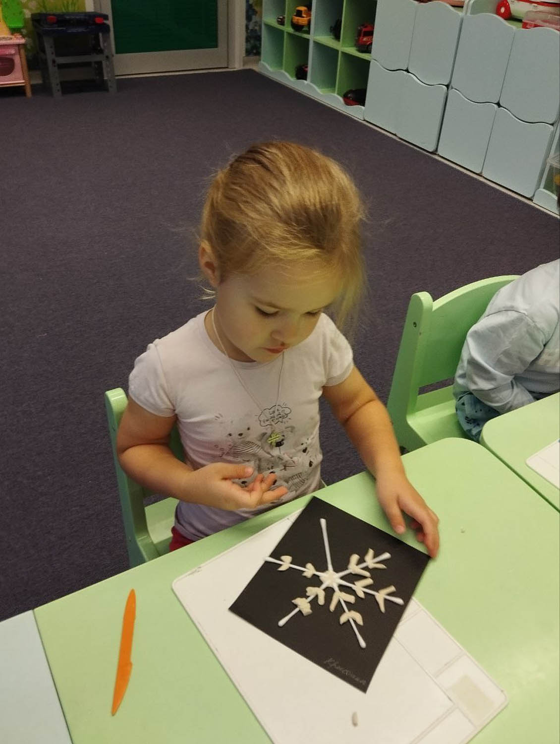 Цель и задачи: Расширять знания о природном явлении- снежинки. Развивать чувство формы, тактильное ощущения. Развивать пространственное мышление. Развивать мелкую моторику.